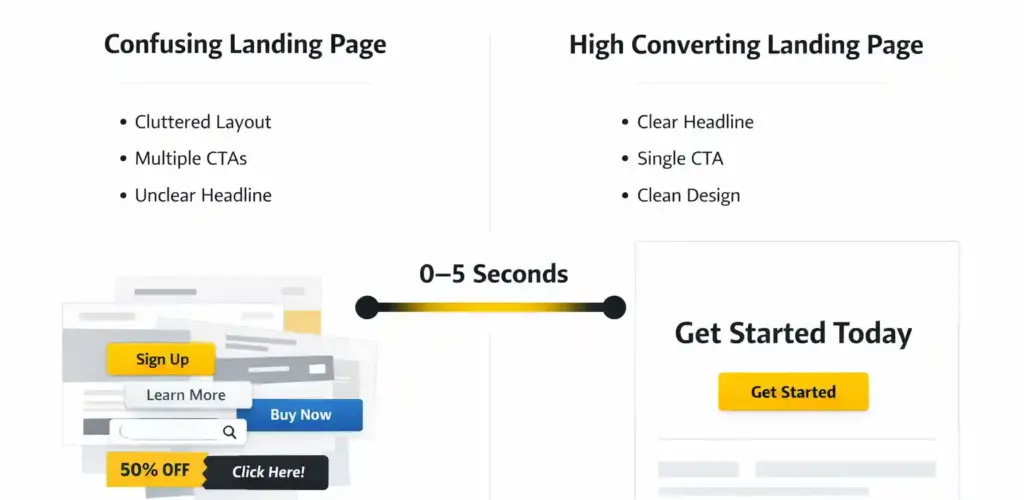 Landing pages don’t fail slowly. They lose people in the first few seconds.