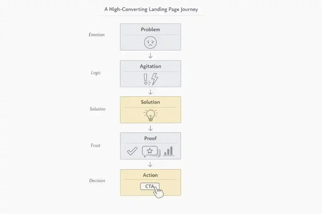 Most brands talk about themselves. High-converting pages talk first about the user’s problem.